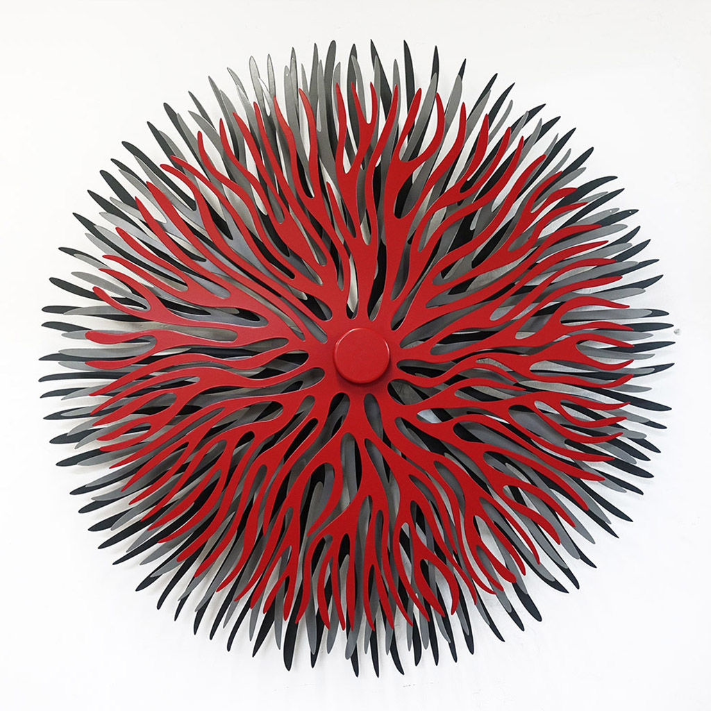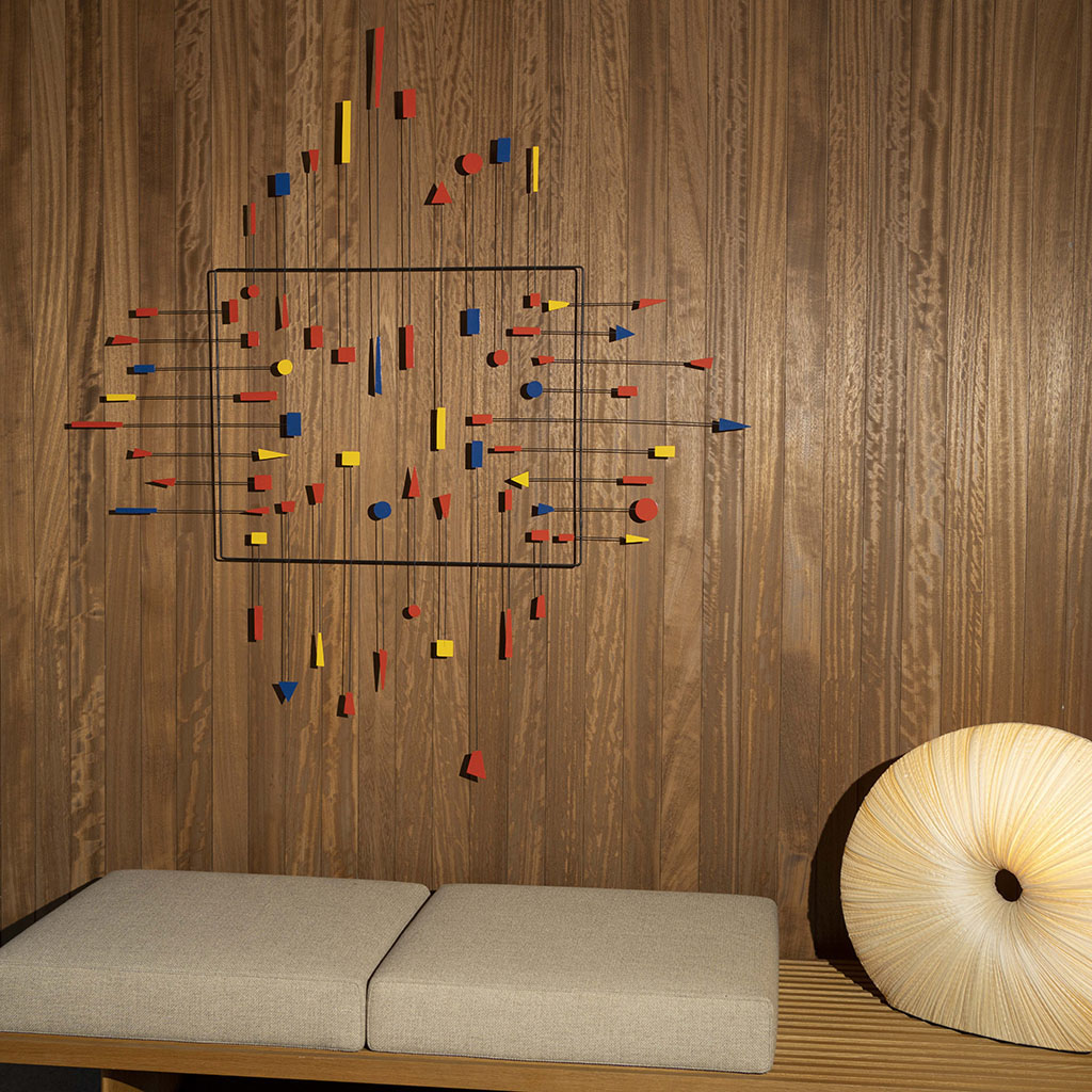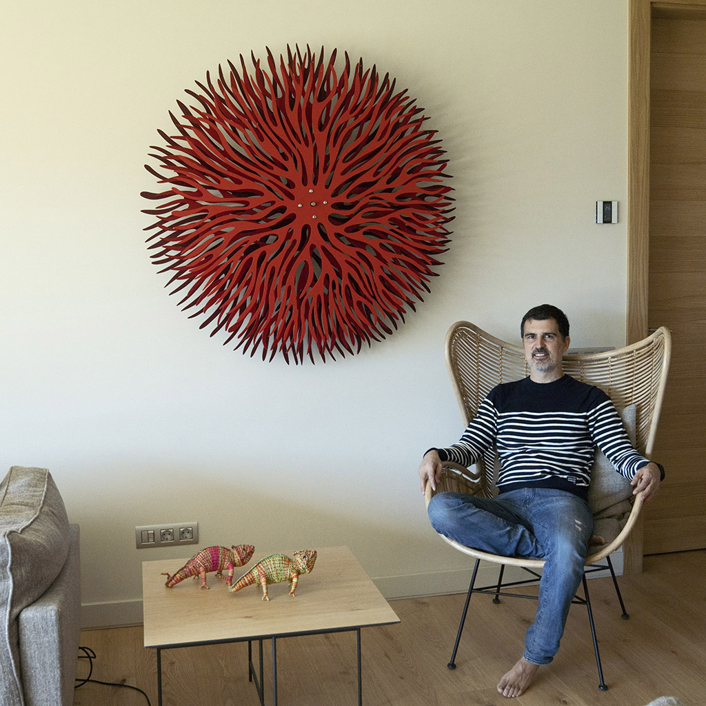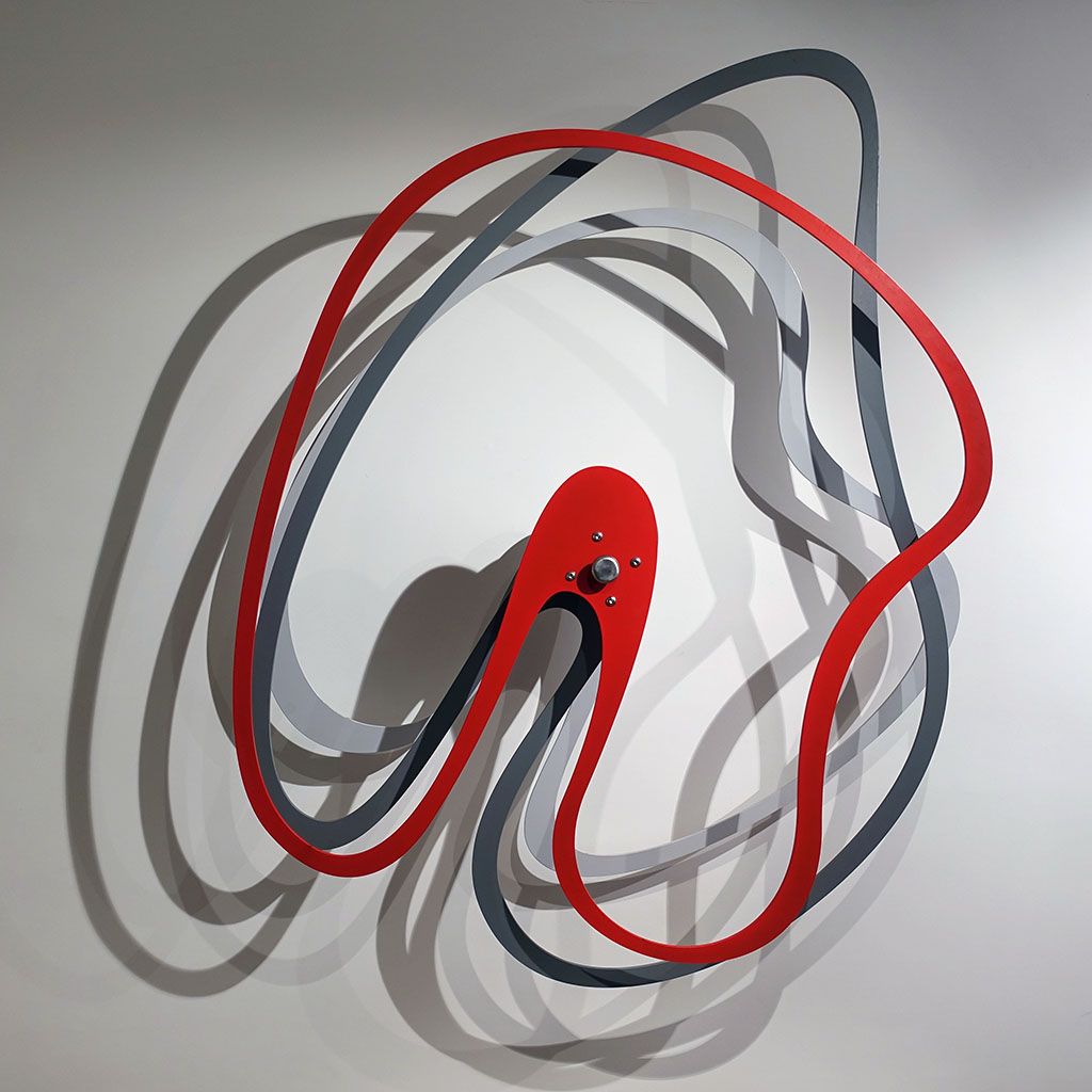 The art Lluís Carulla Ruiz practices reminds me of the great moments in the history of shapes: the plane against perspective, superimpositions on a two-dimensional level from another time, setting the creator into mental motion and placing the experiment in the visitor’s hands. Movement and colour schemes codify and differentiate the entire given surface. His objects form part of movement because movement can be found within that which is static. He is not concerned with a visual representation of shapes, and their representation with words, but rather, that whatever lies within the interior of existence may reach us. After all, life is movement and rhythms, seeking balance between many other systems.