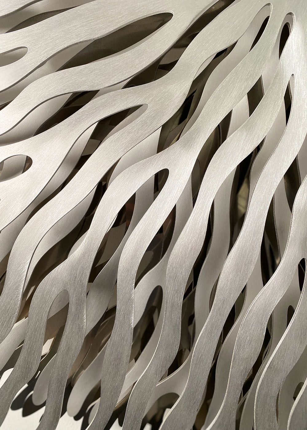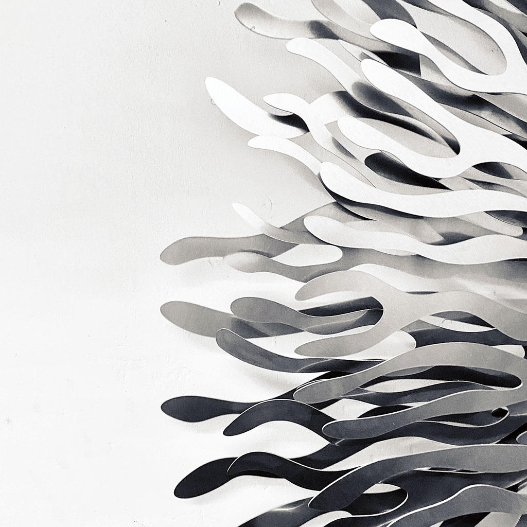 The pieces combine delicacy and strength, expanding into space with rhythm of nature and geometry, capturing the harmony and elegance of organic patterns.